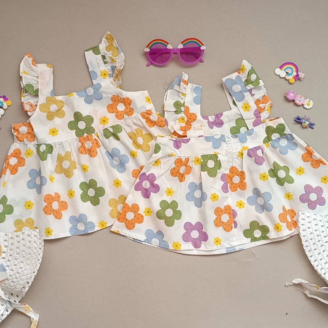 راهنمای سایز ست پیراهن و کلاه حصیری گل گلی