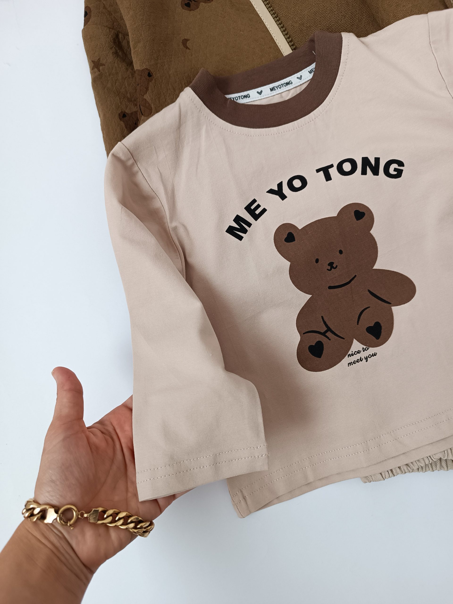 سایز 6🐻 قد كت ۳۴ / عرض ۳۳ / قد شلوار ۴۵ / قد بلوز ۳۳ /عرض بلوز ۲۹