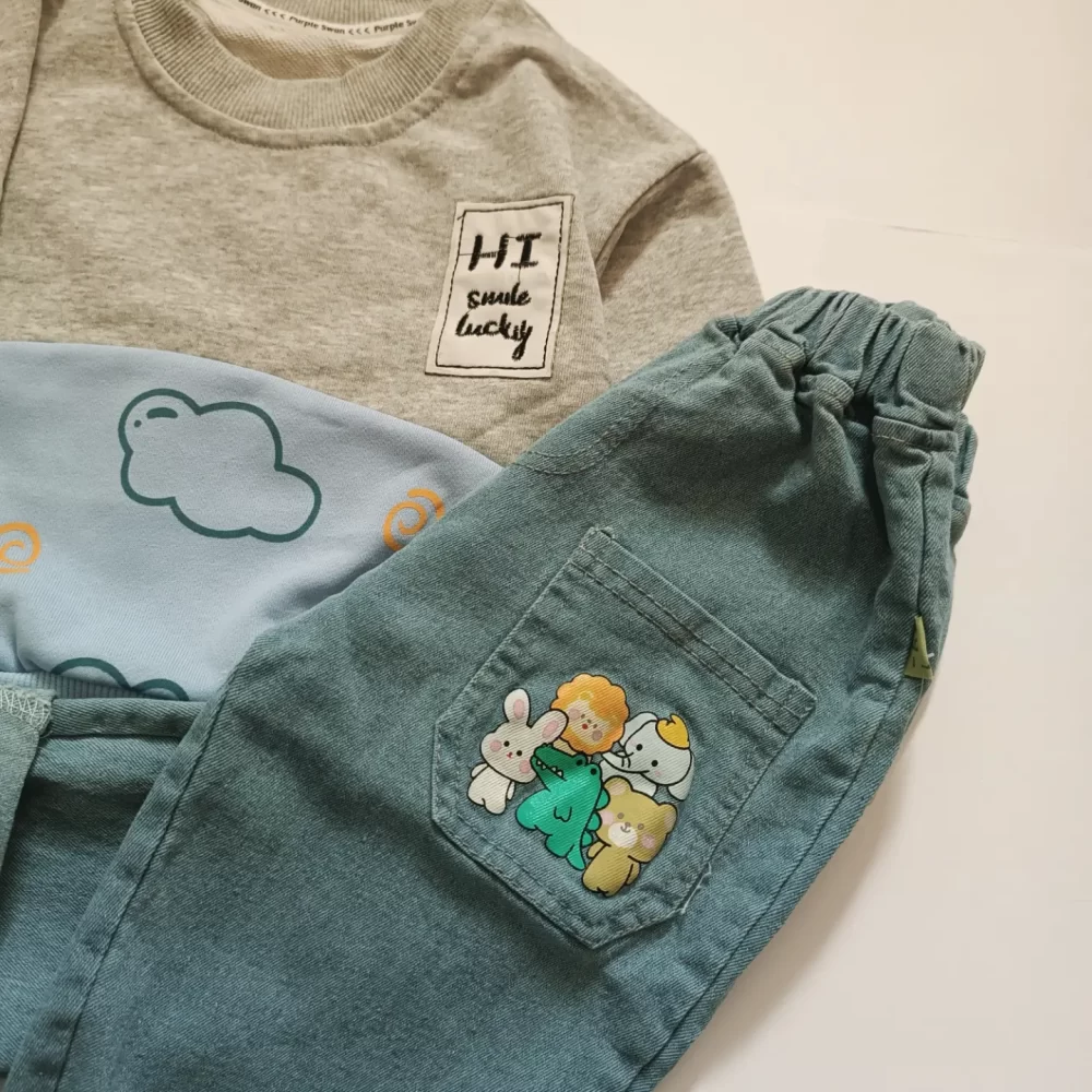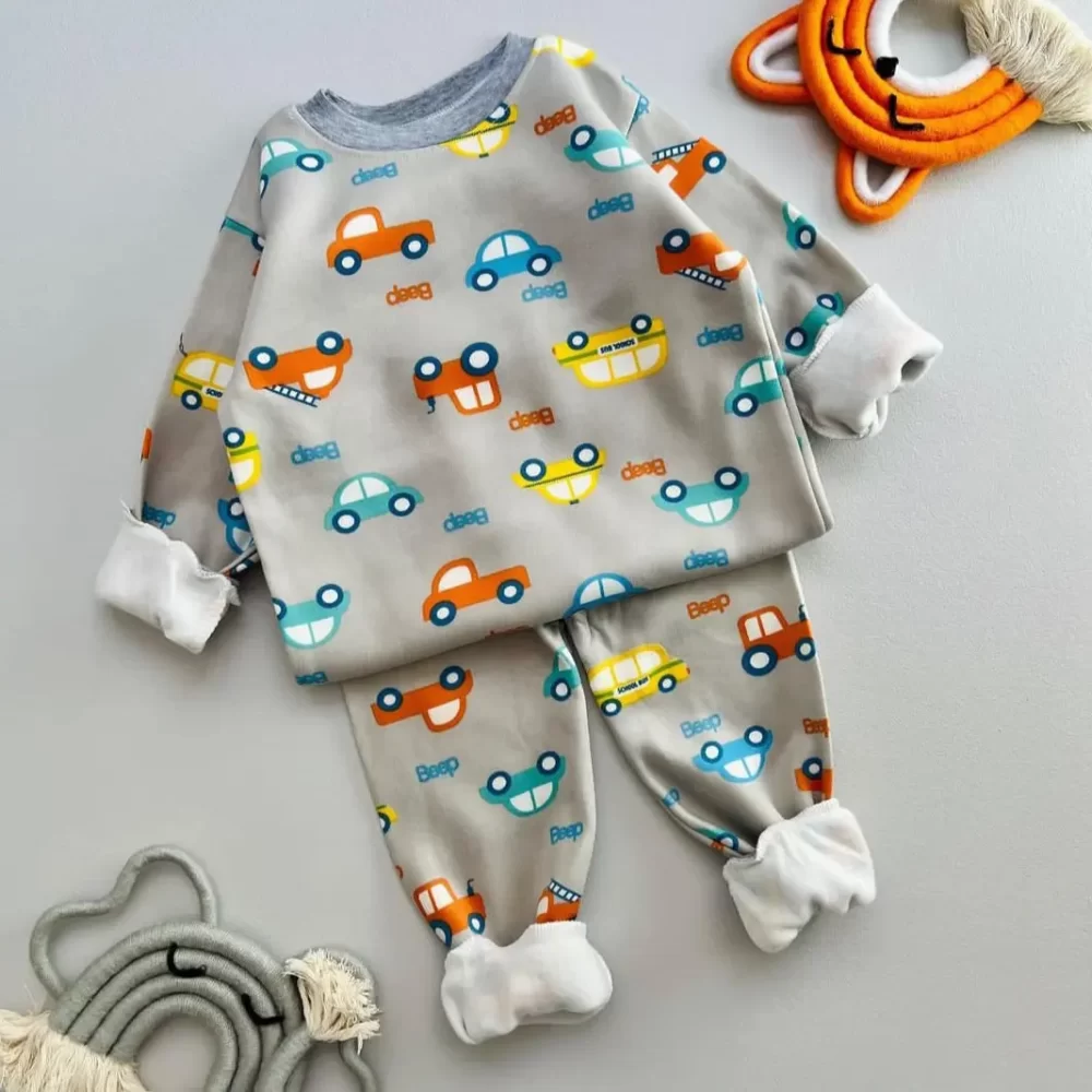 ست آستین طرح دار طوسی