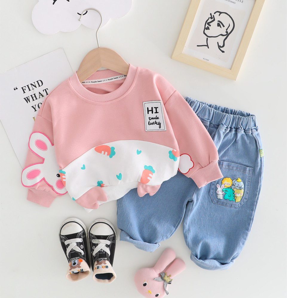 ست آستین طرح دار صورتی