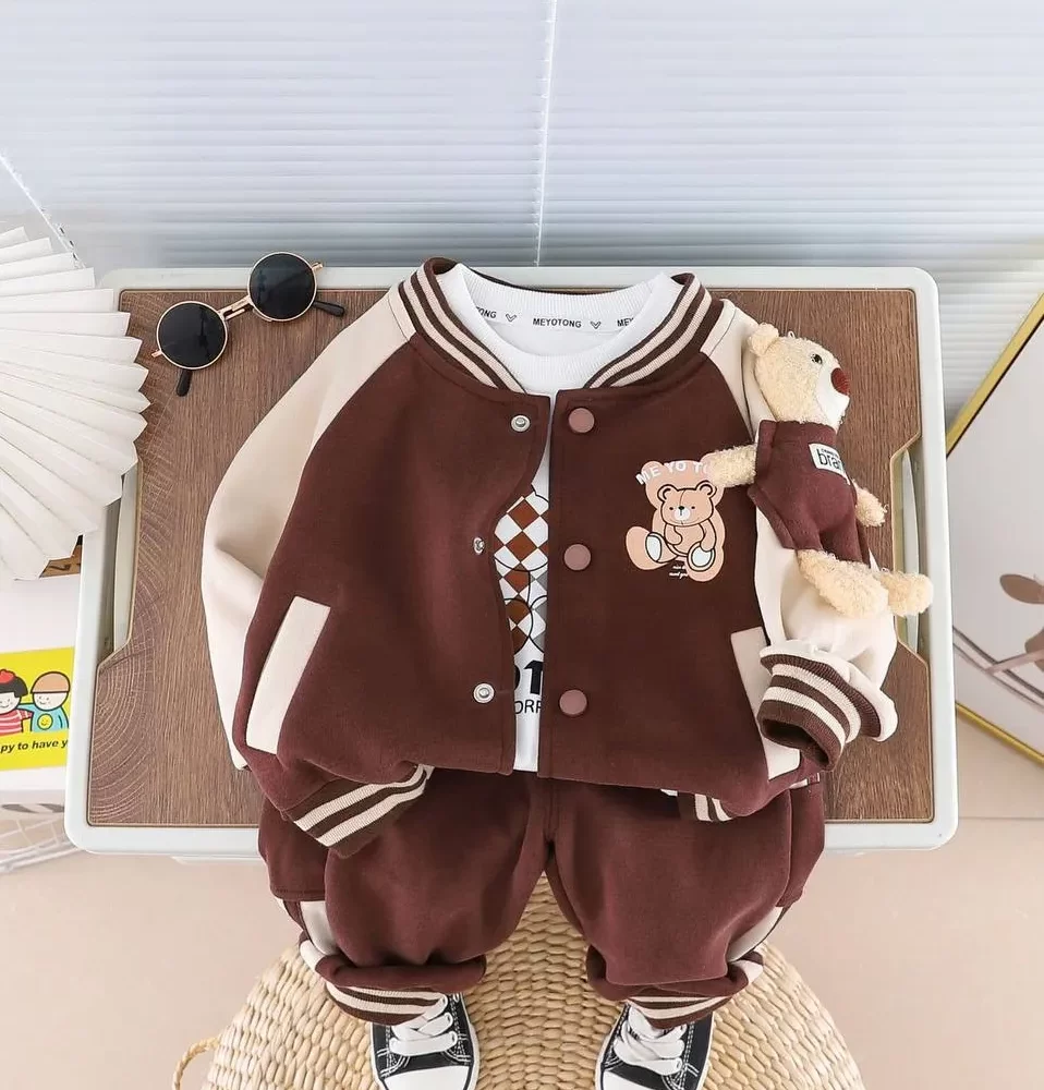 سه تیکه تدی دار قهوه ای